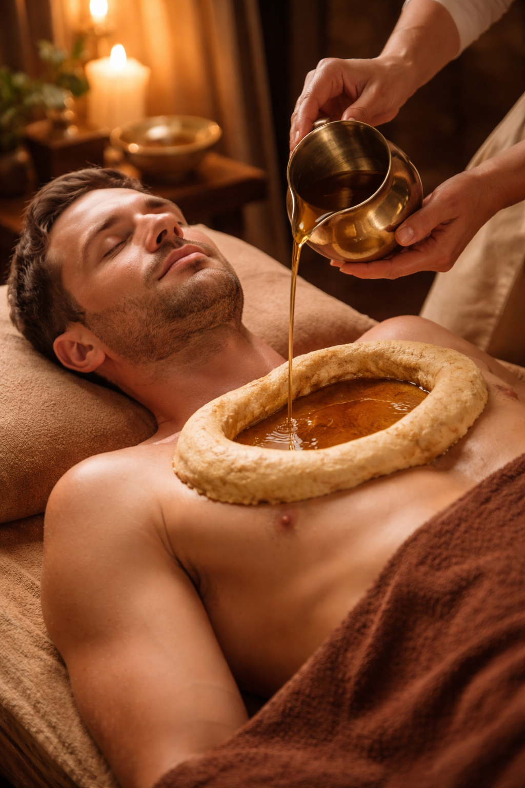 - popis: Teplý olej pomaly steká po tele, prinášajúc hlboké uvoľnenie a rovnováhu nervového systému. Sarwangadhara je kúpeľ v olejovom pokoji a tichu.